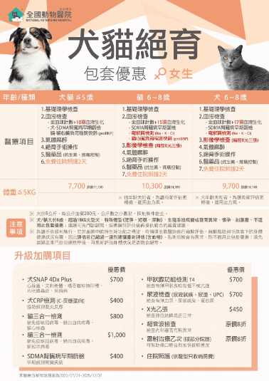 2025犬貓絕育包套優惠方案│術前檢驗、術後照護